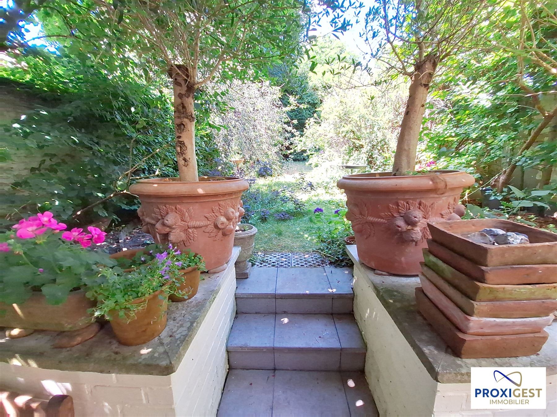 L'appartement du rez-de-chaussée n'est pas en reste avec une grande terrasse offrant une vue agréable sur un jardin verdoyant, un véritable havre de paix en plein cœur de la ville.