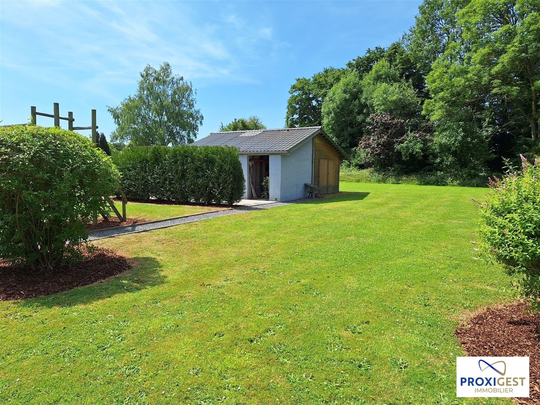 À l’extérieur, le jardin vous séduira par ses espaces, ses coins détente et ses terrasses ensoleillées. Un garage, un parking privatif, ainsi qu'une vaste cabane/atelier de jardin complètent l’ensemble.